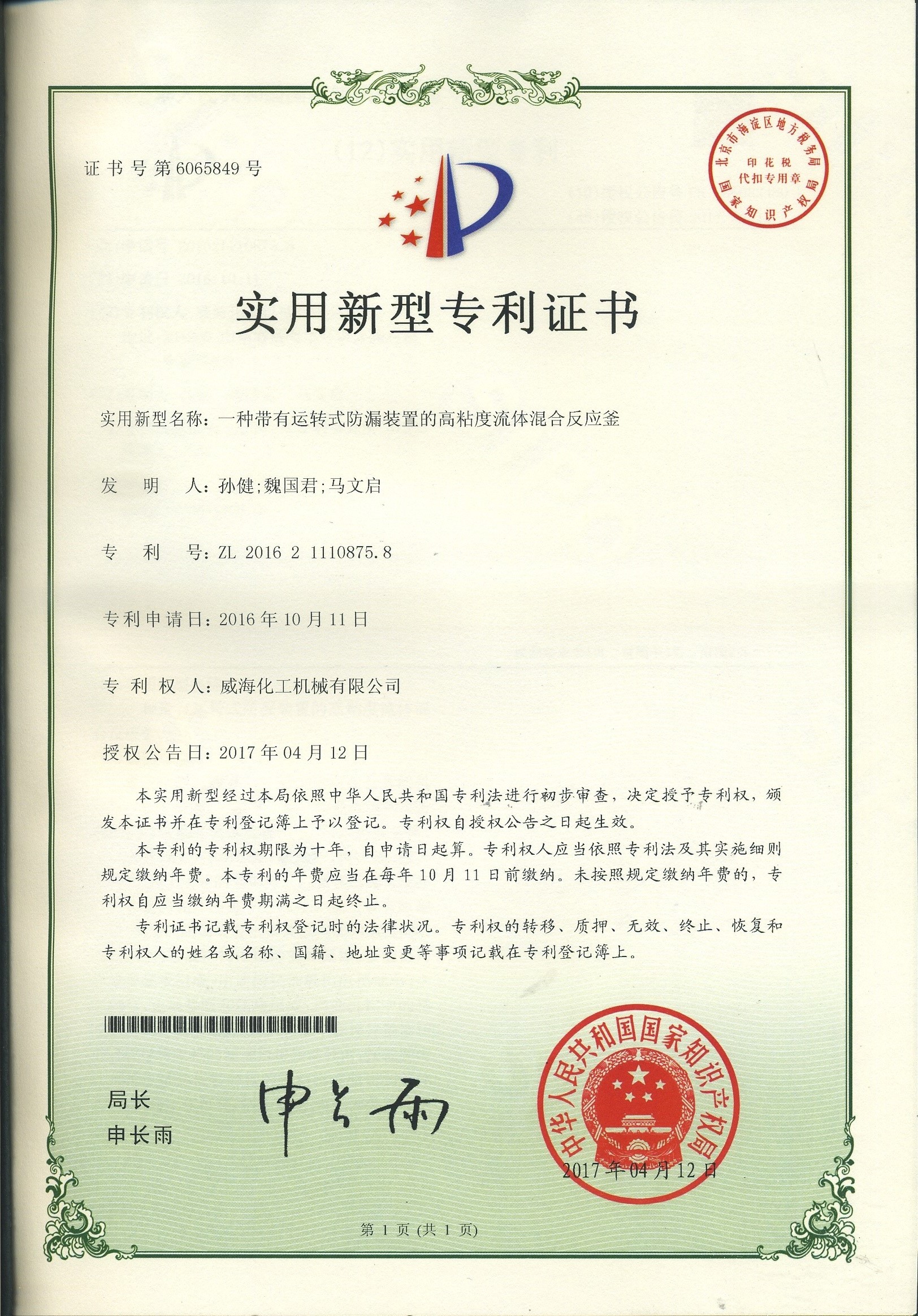 公司建有磁力驅(qū)動測試試驗室、攪拌模擬試驗室、反應(yīng)釜流體混合攪拌重點實驗室等,科研力量雄厚。截至2024年,公司共承擔近280項自主/合作開發(fā)任務(wù),先后承擔省級新產(chǎn)品開發(fā)任務(wù)25項,其中23項產(chǎn)品已達到國內(nèi)水平。獲得各類省、市級技術(shù)創(chuàng)新獎30余項;參與起草、修訂標準共8項,GB/T30098-2013實驗室用磁力驅(qū)動反應(yīng)釜標準、HG/T3648-2011磁力驅(qū)動反應(yīng)釜標準、GB/T29254-2012實驗室反應(yīng)釜用控制器標準、NB/T47002.1~47002.4-2019壓力容器用復(fù)合板;已獲得授權(quán)專利95項,其中發(fā)明專利19項,實用新型專利69項,外觀專利7項;擁有專有技術(shù)和核心技術(shù)40余項。